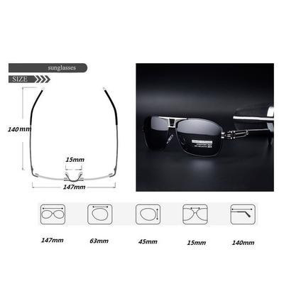 مجموعة النظارات الشمسية المستقطبة : 1 *1Glasses *Lightningbox 1 *Fabric Fibers1 * :معدن : عدسة الراتنج : UV400+الاستقطاب : نظارات الحافة: 147mm : 63mm : 45mm : 15mm : 140 مم (نطاق خطأ بين (1-2 مم) الأرضية: للجنسين