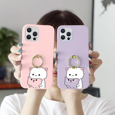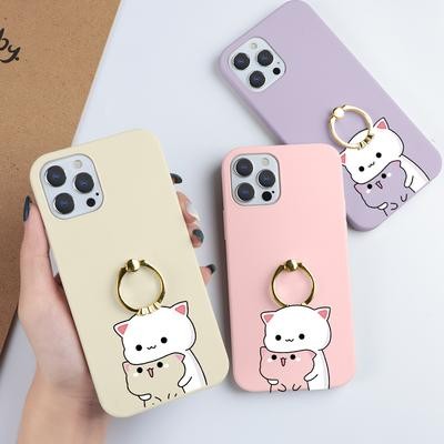 Cat Cat Finger Ring Case لـ iPhone 12 11 Pro Max 8 7 6 Plus X XR XS Max
