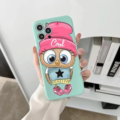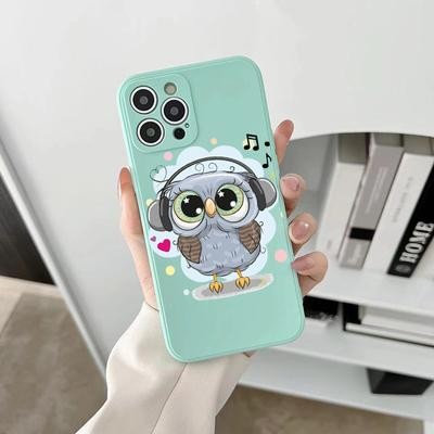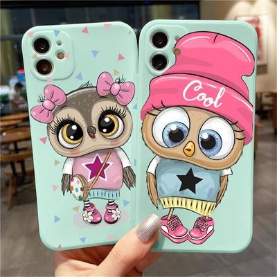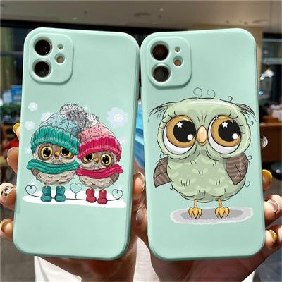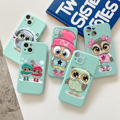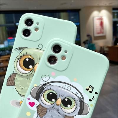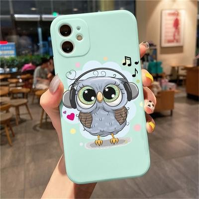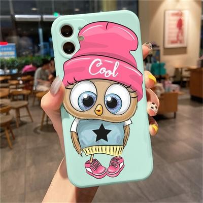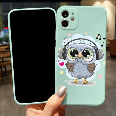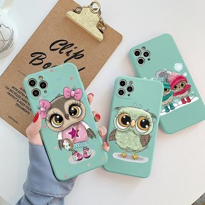 OWL Light Blue Soft Case لـ iPhone 12 13 11 Pro Max Se X Samsung A52 A32 A50 A53 A12 A13 A