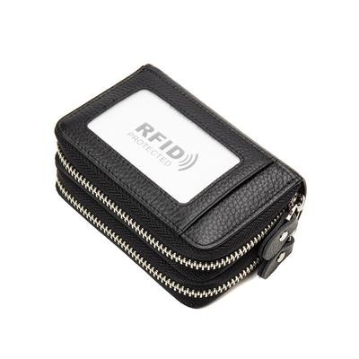 RFID حظر أزياء المرأة حامل بطاقة بطاقة حقيقية جلدية مزدوجة السحاب بطاقة كبيرة