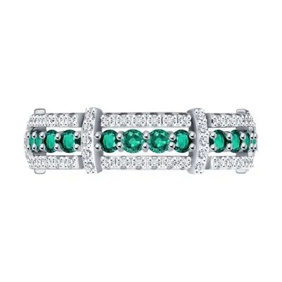 سوكولوف ، خاتم الذهب الأبيض مع الماس والزمرد ، 3010622-3 ، 585 معيار